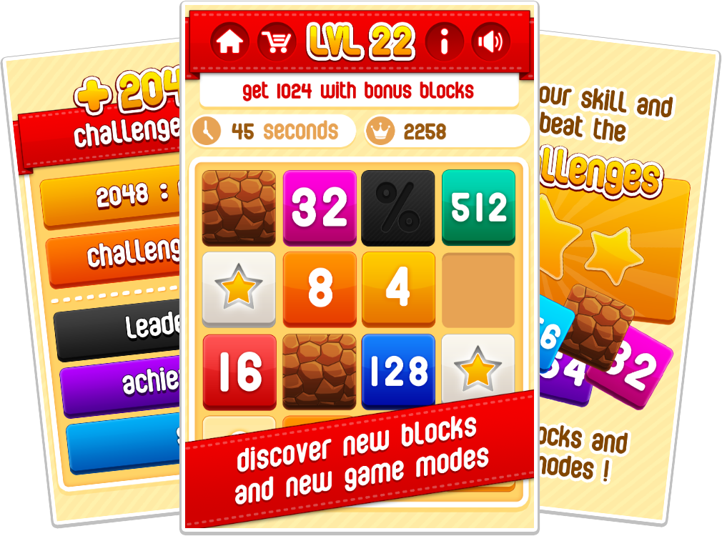 Discover now for free our new addicting game 2048 plus : challenge edition on IOS and ANDROID !