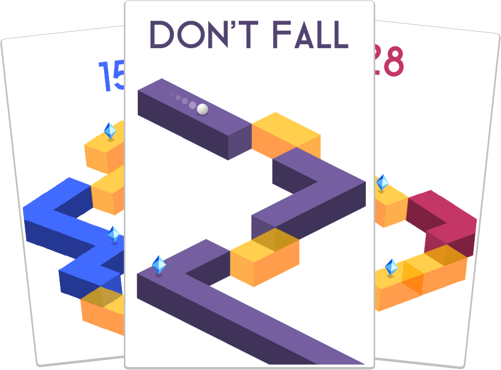 Discover now for free our new addicting game Don't Fall on IOS and ANDROID !Slide the yellow cubes with your finger in order to fill all the holes in the path.The ball must not fall down ! Collect as many gems as you can to unlock new characters.